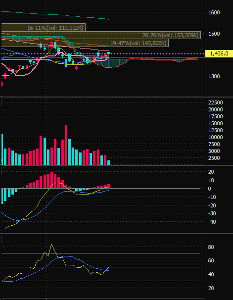 そこまで買いのシグナルでも無いけど買った。なぜか!?単なる感。1400円以下は買いの個人的予想は変わらず。